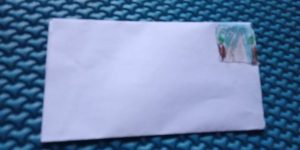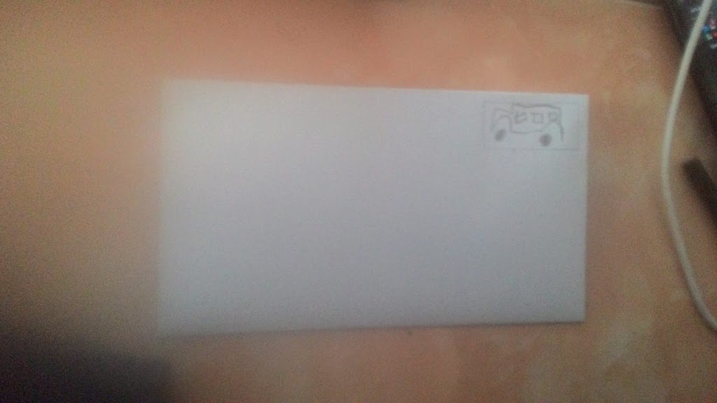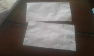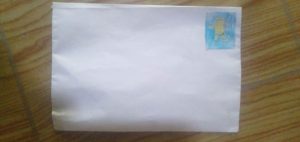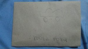 Anak-anak dibimbing orang tua membuat amplop surat dari kertas kemudian diberi perangko dengan menggambar bebas sesuai kesukaan anak.