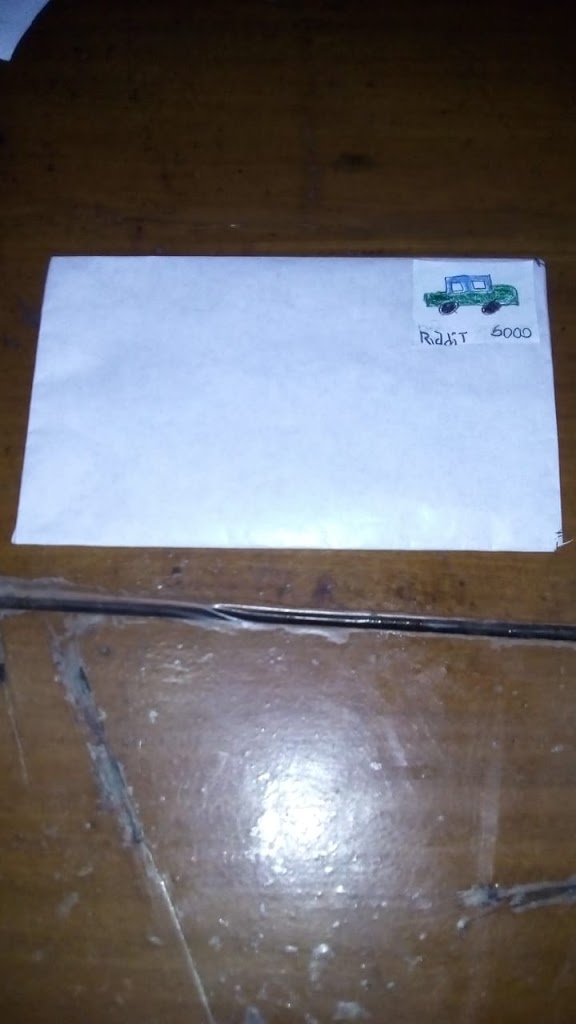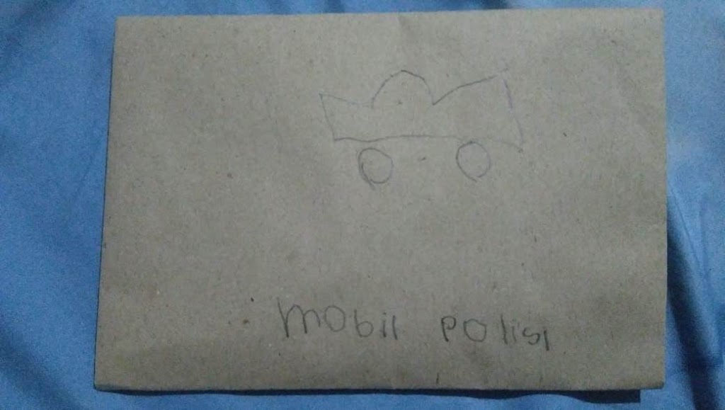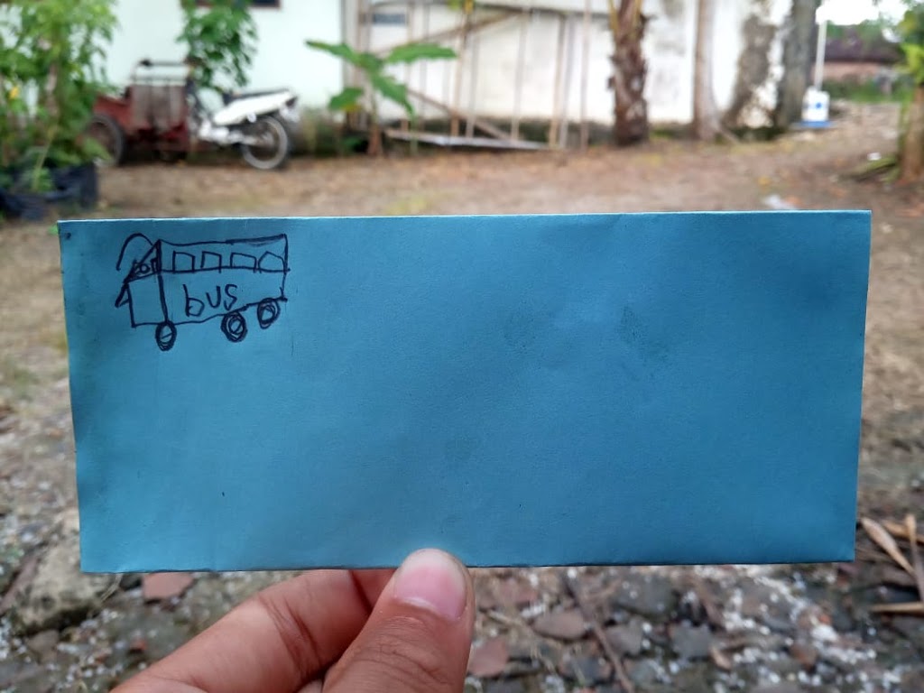 Salah satu kegiatan anak-anak di rumah adalah belajar dengan tema alat komunikasi yaitu membuat amplop surat dengan diberi gambar dipojok kanan atas sebagai perangko.